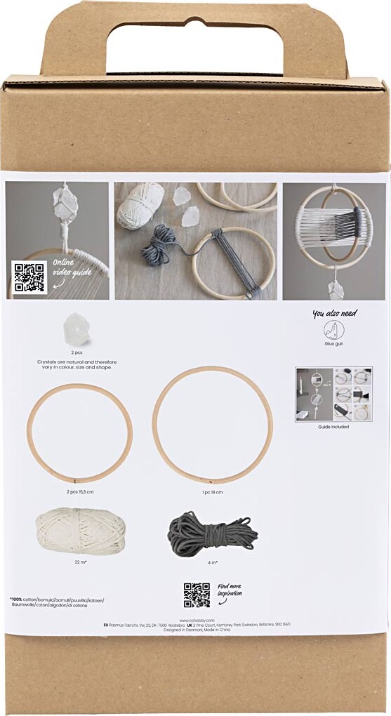 Med dette kit kan du knytte en smuk uro med ægte bjergkrystaller i. Krystallerne symboliserer unikke energier, som du kan læse mere om på det medfølgende kort. Materialer og vejledning medfølger. Det eneste, du selv skal have klar, er en limpistol