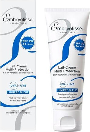 Ideel til daglig beskyttelse. Dag efter dag genvinder huden sin smidighed og stråler af skønhed. Velegnet til sensitiv hud. Embryolisse Lait-Crème Multi-Protection SPF 20 kan bruges som dag-/natcreme, en makeup primer, forebyggende creme mod ældningstegn, beskyttelse mod UVA/UVB-stråler, forurening og blåt lys og infrarød. Derudover kan den bruges som en aftershave, der beroliger huden efter barbering.