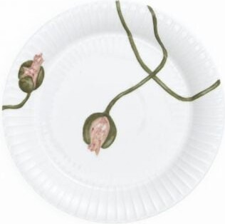 De smukke akvareltegninger af valmueblomster er håndmalet af designeren Rikke Jacobsen og overført til porcelænet.