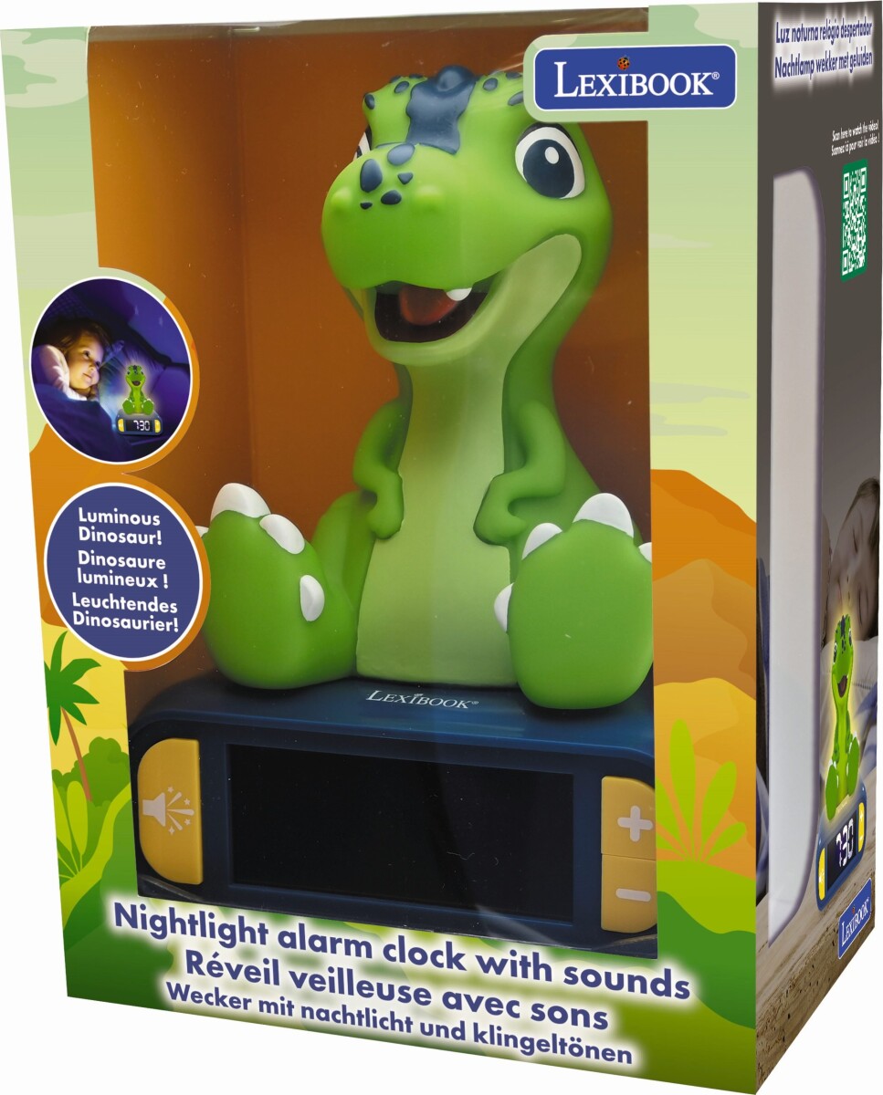 Vækkeur til børn med et supernuttet design med en Dino, der lyser i et par minutter, når du trykker på den.
