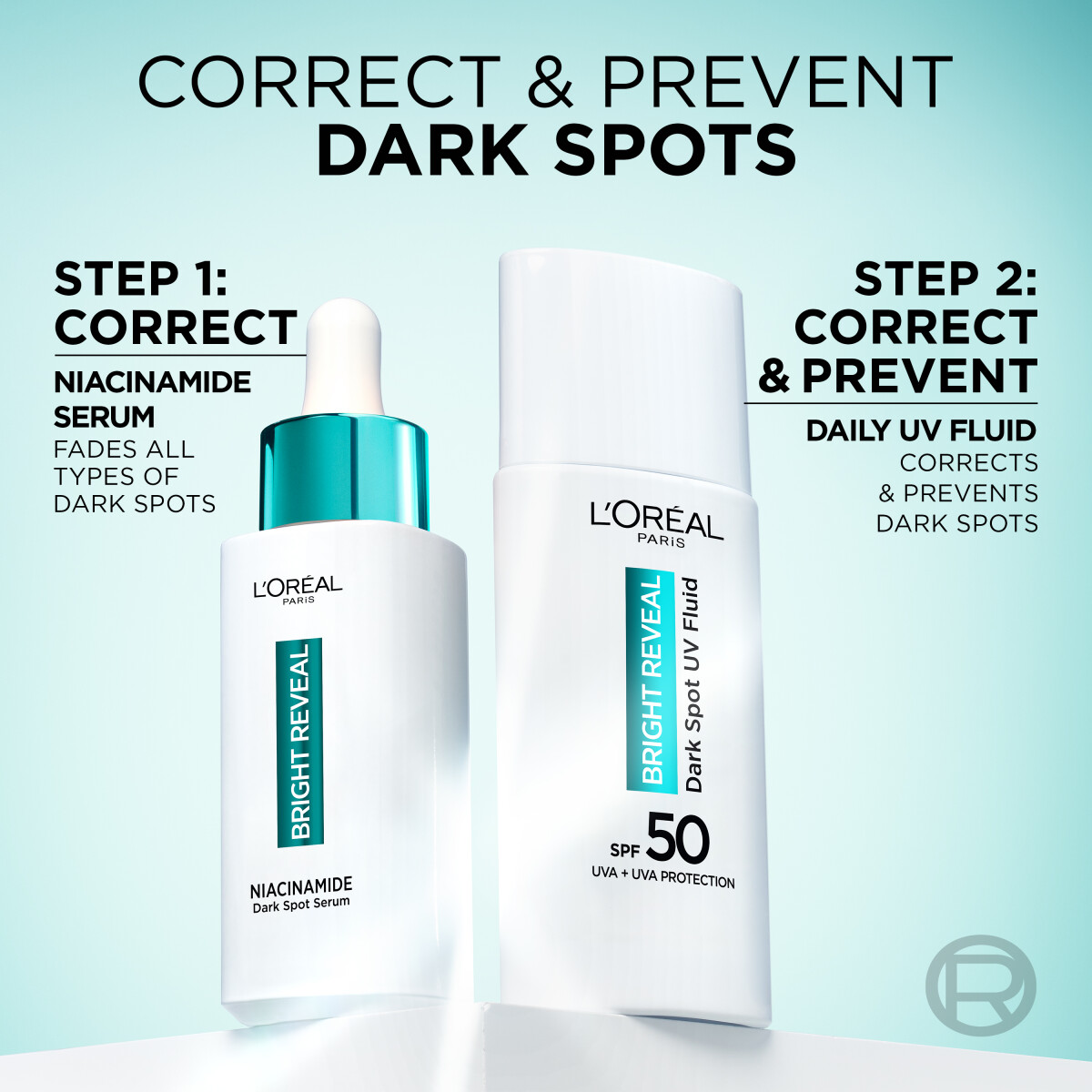 L’Oréal Paris Bright Reveal Dark Spot UV Fluid SPF50 er en letflydende og fugtgivende dagcreme som forebygger solskade og alderstegn samt beskytter mod fremkomsten af mørke pletter.