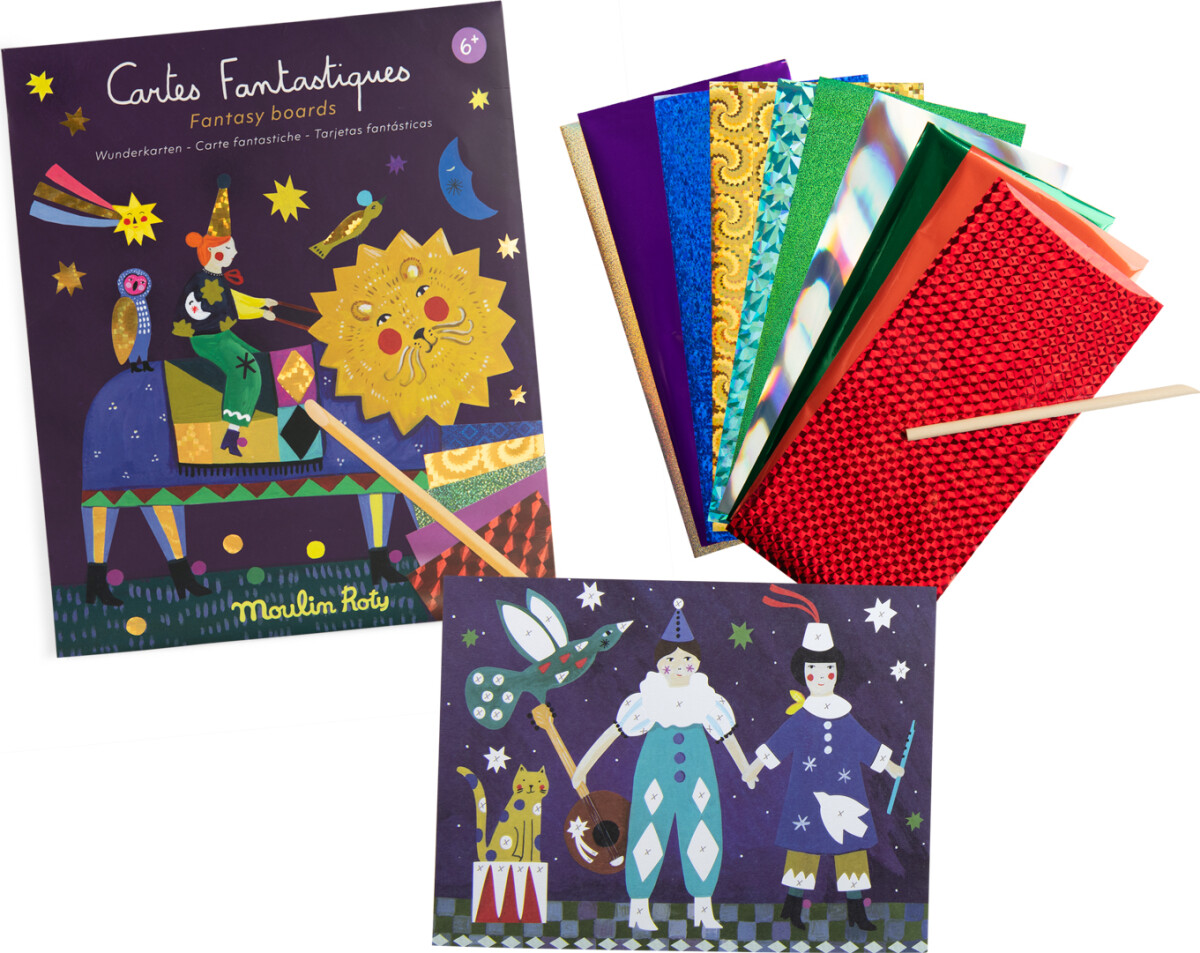 Slip kreativiteten løs ved at dekorere disse smukke tavler med fantasipapir efter eget valg. Indeholder seks illustrerede tavler, ti ark fantasipapir og et træværktøj. + 6 år