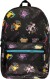Lille rygsæk af sildebensstof og meleret blåt frottéfløjl med gavtyven Puce, der pryder fronten.