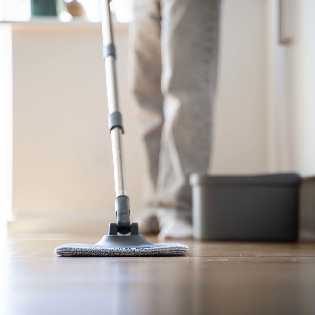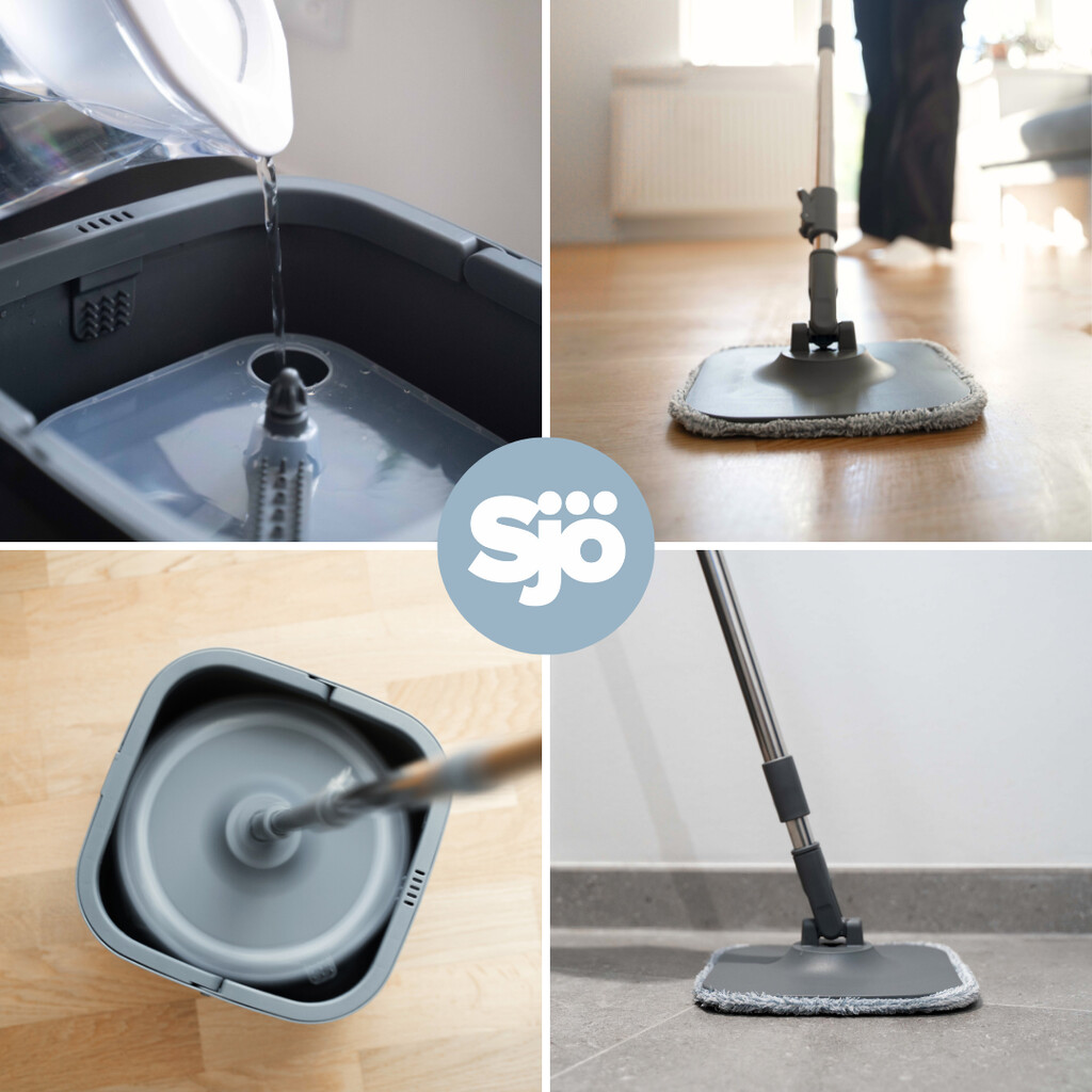Mikrofiberkluden fastgøres nemt til moppehovedet og kan efter brug vaskes i maskine, så den kan genbruges. Spanden er kompakt og udstyret med en vridningsmekanisme, så både skylning og vridning klares i én beholder. Dette komplette system gør det enkelt at vaske forskellige gulvtyper med ét sæt: spand, moppe og klud.