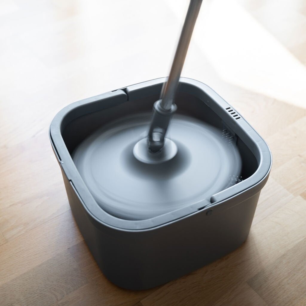 Denne gulvmoppe er udstyret med et innovativt roterende system, som gør det muligt at skylle og vride moppen direkte i spanden. I stedet for at presse skaftet lodret ned, drejes moppehovedet i spanden, hvilket gør vridningen både lettere og mere ergonomisk.