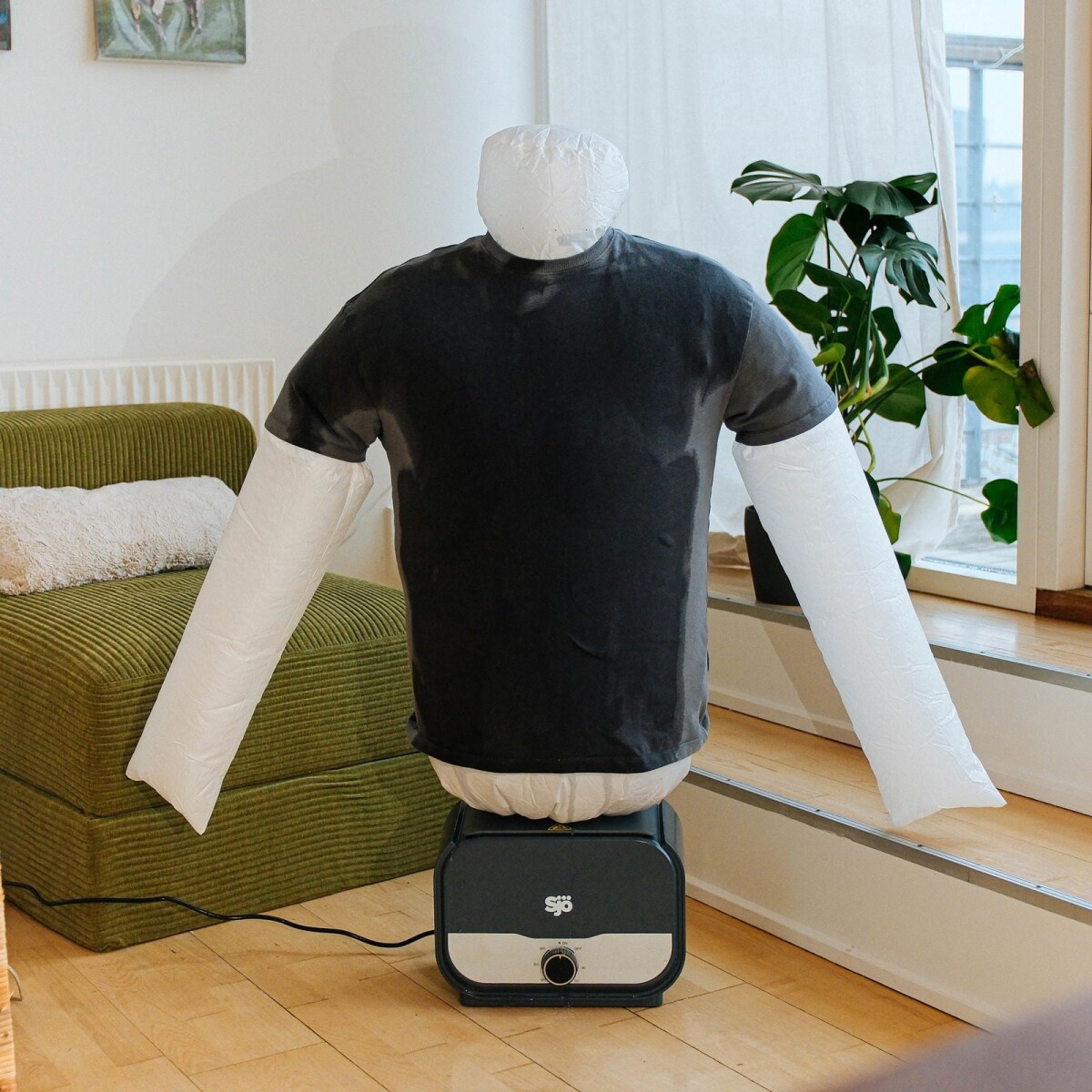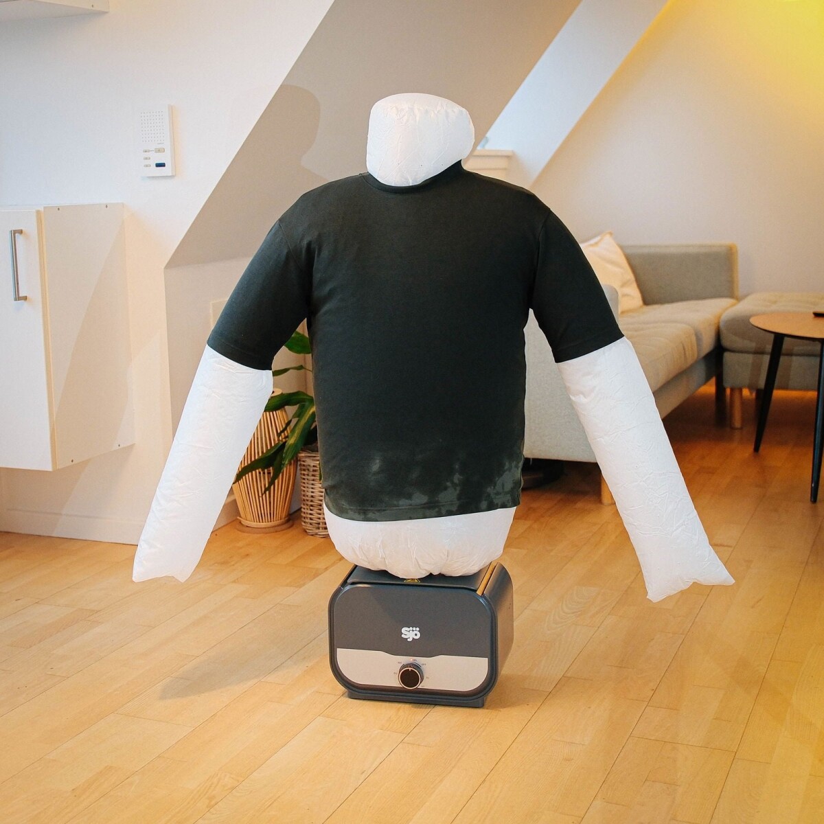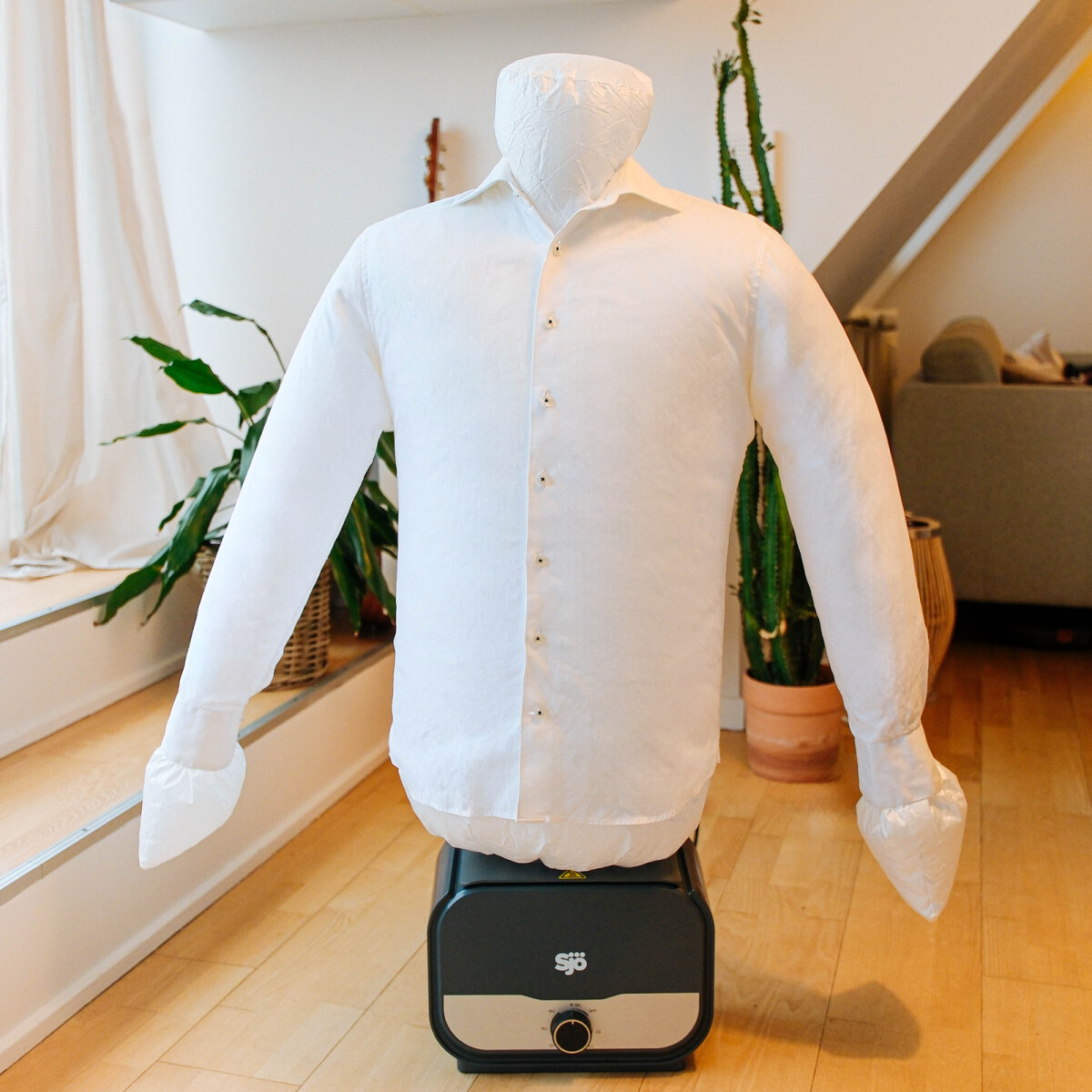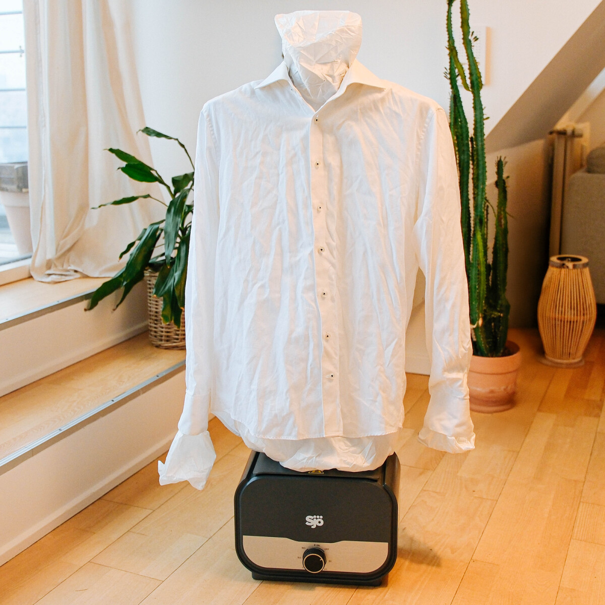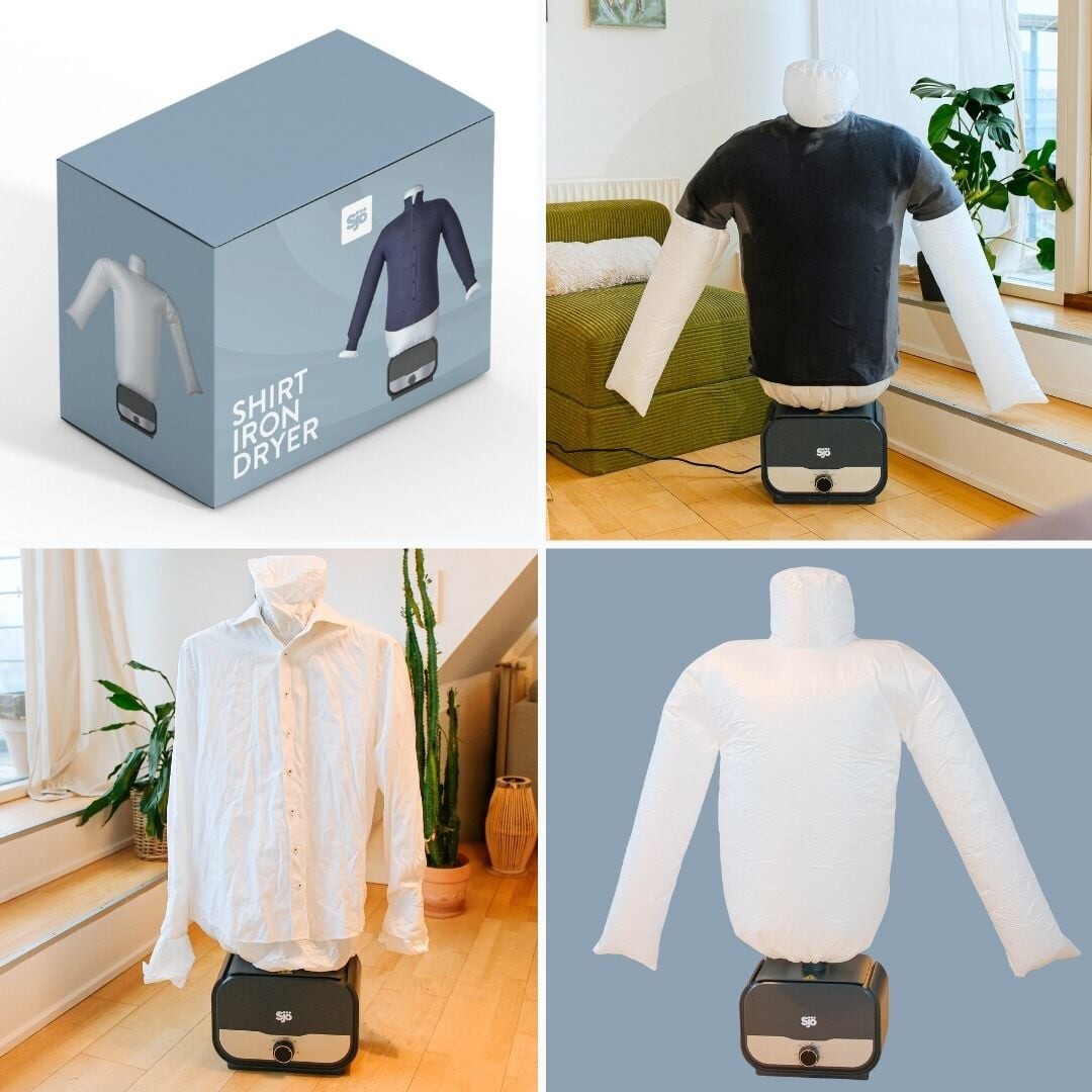 Glem alt om tørrestativ og krøllede skjorter med Sjö skjortetørrer, der også fungerer som strygehjælp. Denne smarte enhed tørrer din skjorte ved hjælp af varm luft, samtidig med at den holder tøjet strakt og glat. Det gør den perfekt til hverdagen, hvor du hurtigt vil have en pæn skjorte uden besværet med strygebrættet.
