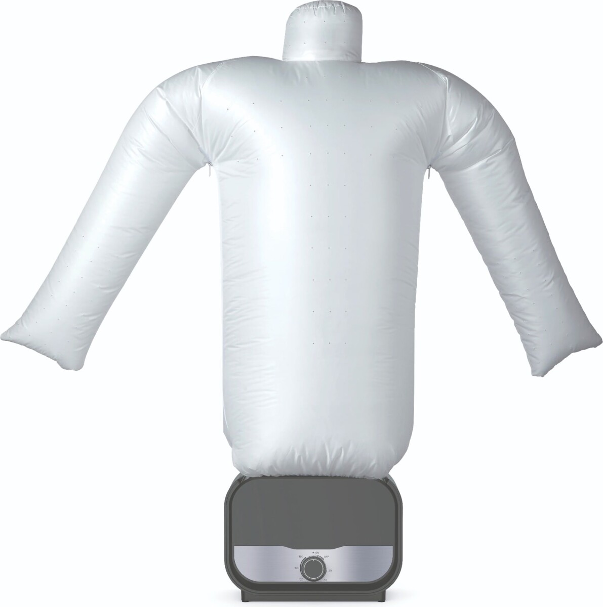 Du trækker skjorten over den medfølgende tørrepose og hænger den på den øverste holder. Så blæser maskinen varm luft ind, som "oppuster" skjorten og tørrer den jævnt. Den tætsiddende form minimerer krøller og folder, så skjorten bliver mere glat, end hvis den bare blev lufttørret på almindelig vis.