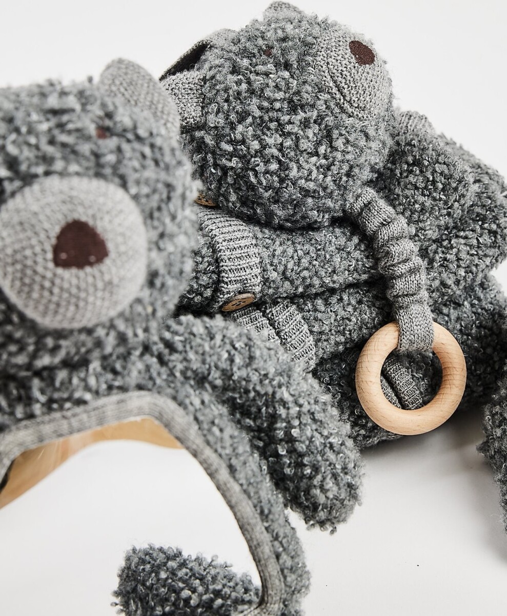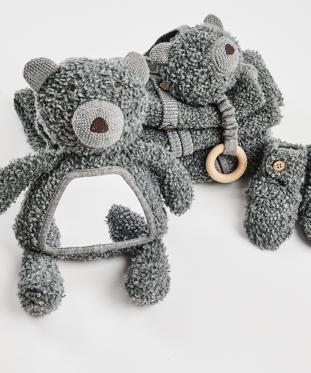 Smallstuff - Aktivitetsbamse Med Spejl - Uld Bouclé - Grå